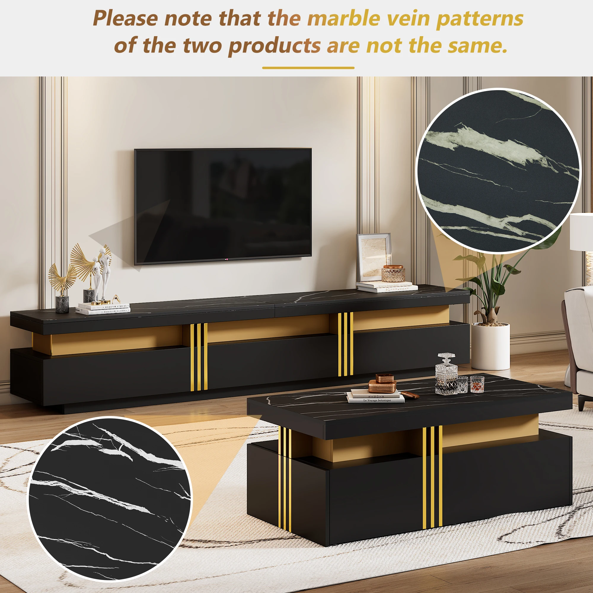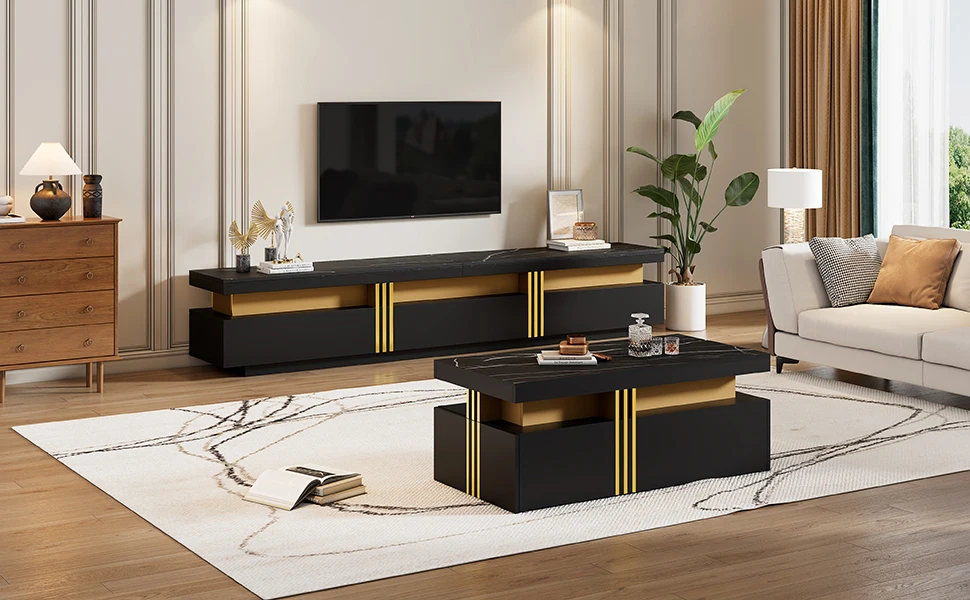 7. OBSERVERA: Den mönstrade ådringen på TV-stativet och soffbordet skiljer sig åt, så var försiktig vid köp.