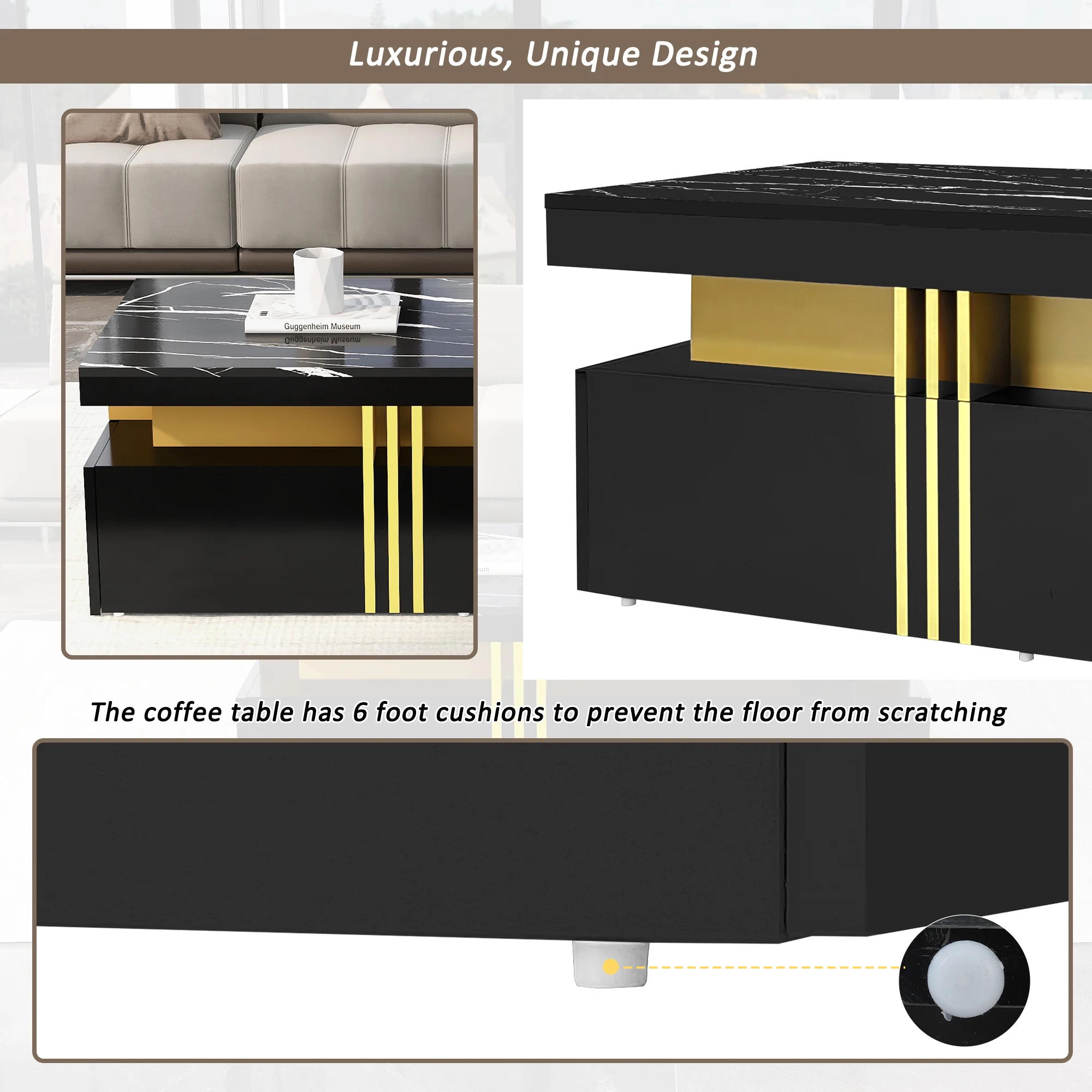 2. LYXIG MARMORLOOK: Bordsskivan med marmoreffekt skapar en elegant och modern atmosfär.